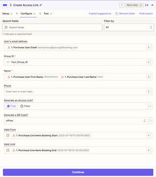 Group ID | Create a group with access needed for the booking, click Copy ID, and paste it |